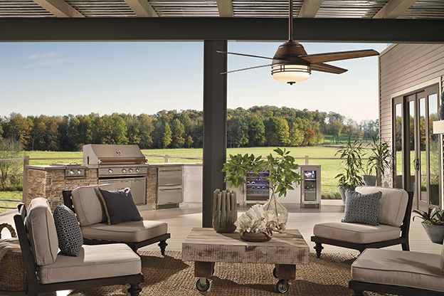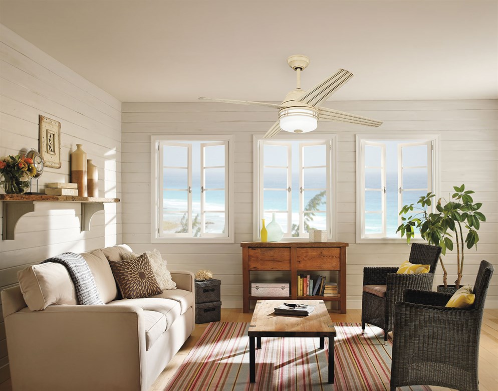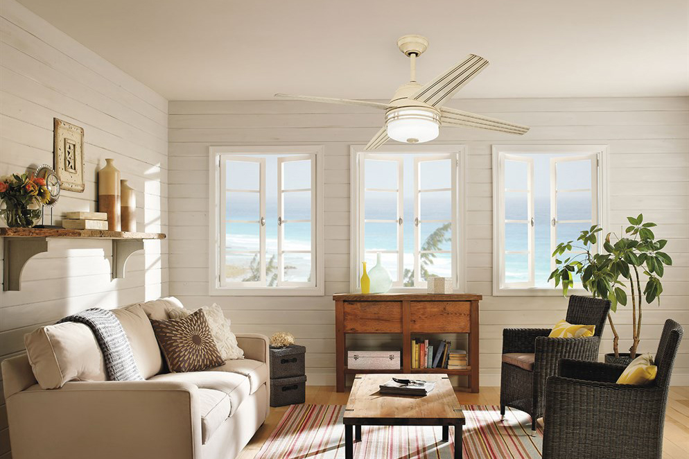 We offer different makes and models of ceiling fans, from basic white to fully customized. In addition, we offer a huge selection of glass and lighting options. All of our fans have a lifetime warranty and a one year in-home service warranty. For a full catalog of options, visit our suppliers: Kichler, Regency, and Sunway.